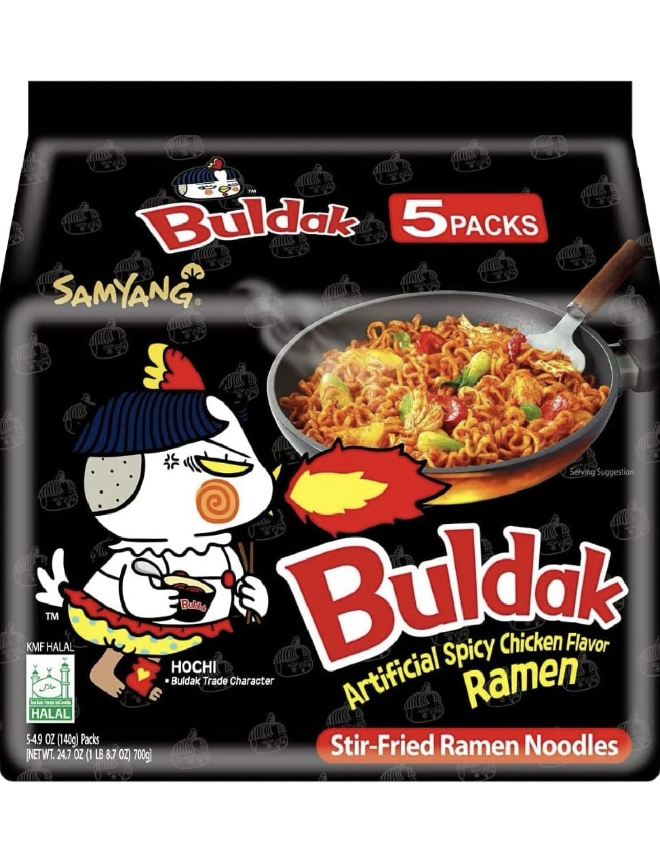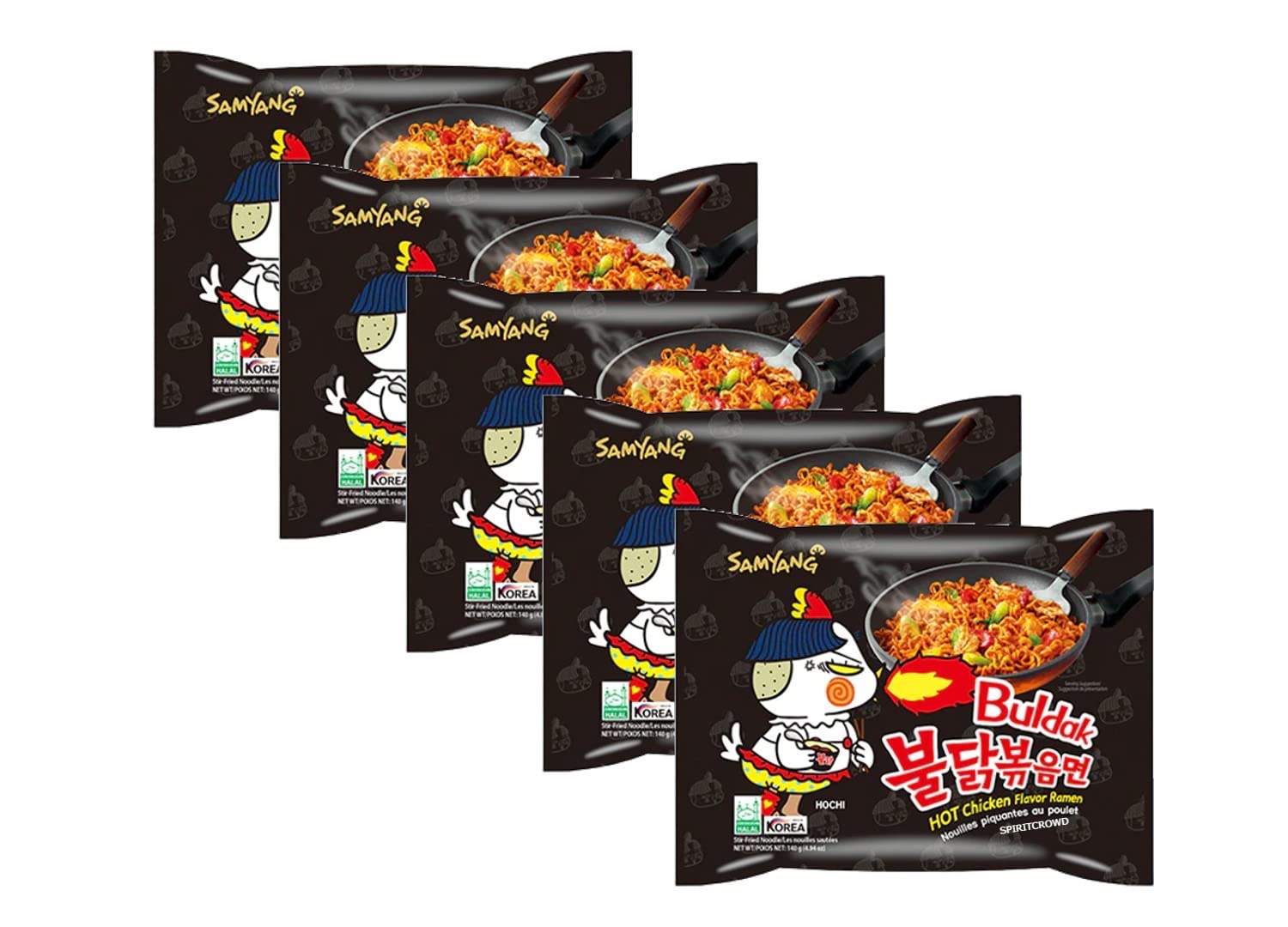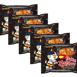 Samyang Korean Buldak Noodle Set – Hot Chicken Flavour Korean Style Instant Ramen Spicy Challenge Halal 700g (Pack of 5)